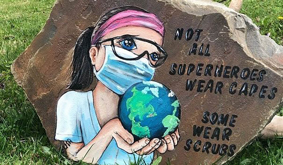 The community was invited to paint rocks with messages for hospital staff as a way to show support. The rock pictured above was painted by Elisa Rutledge.